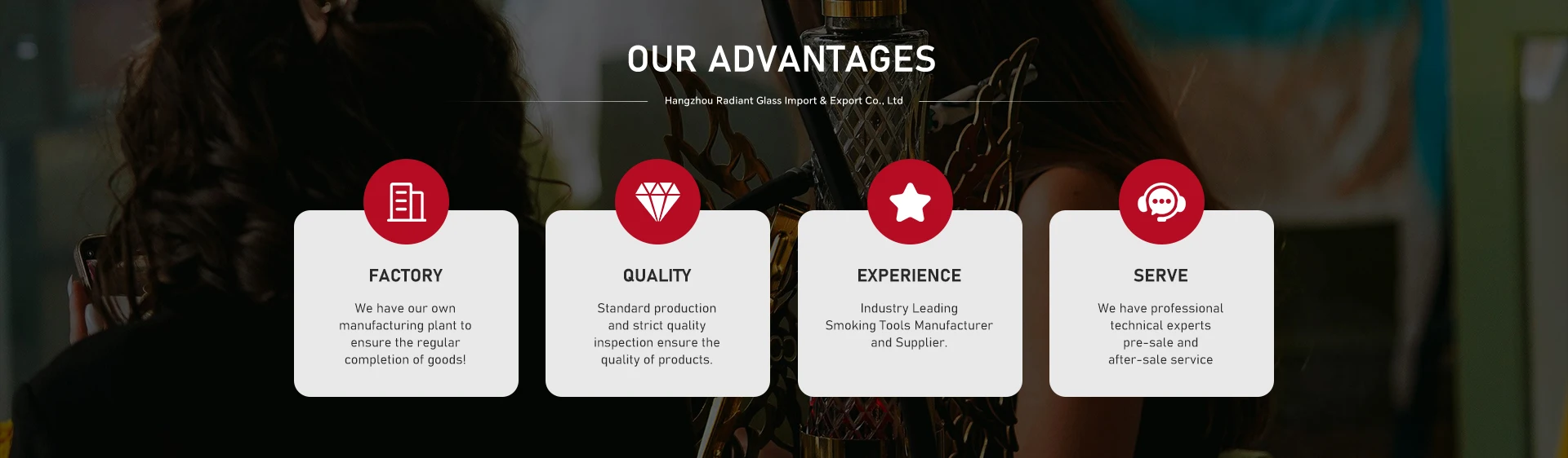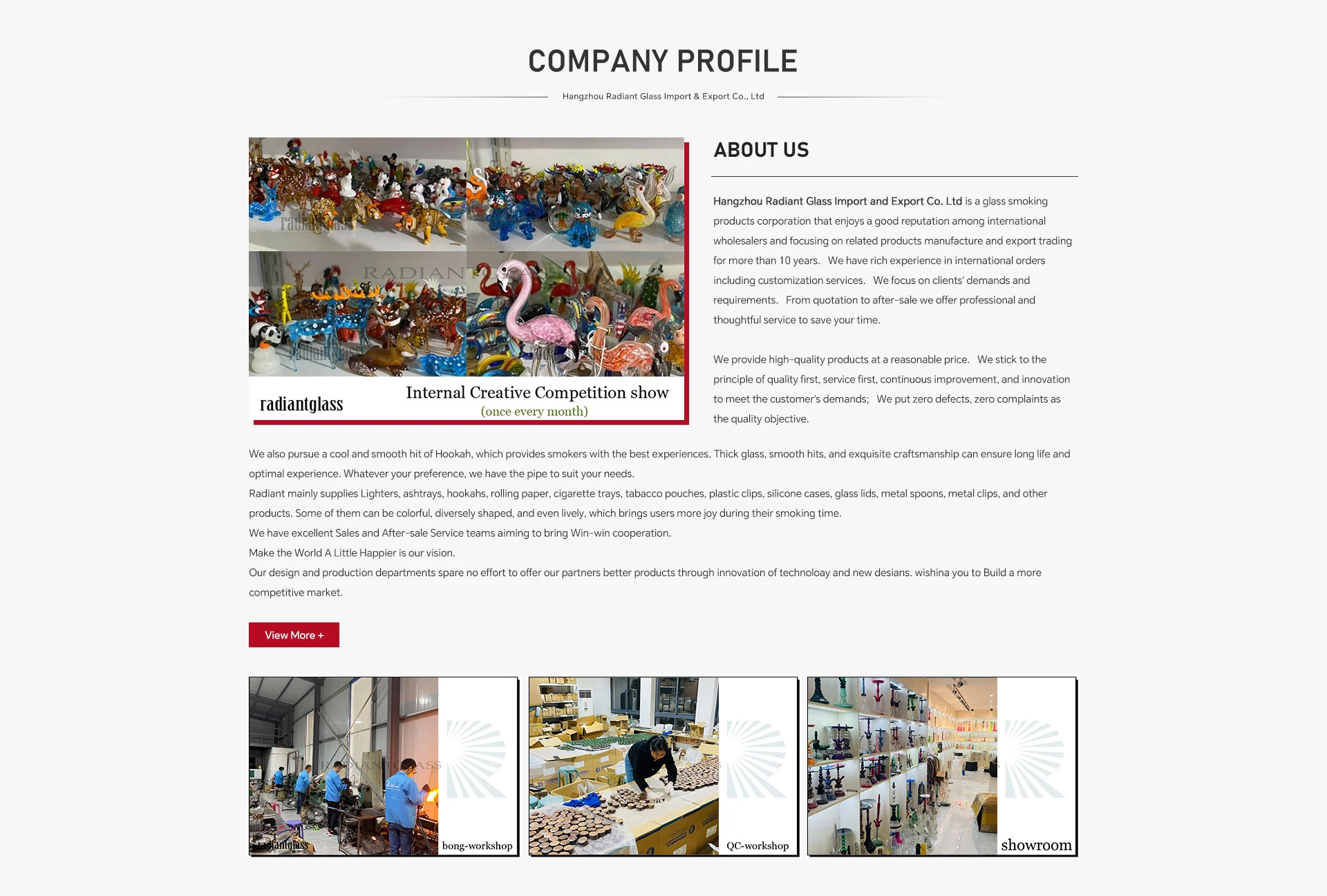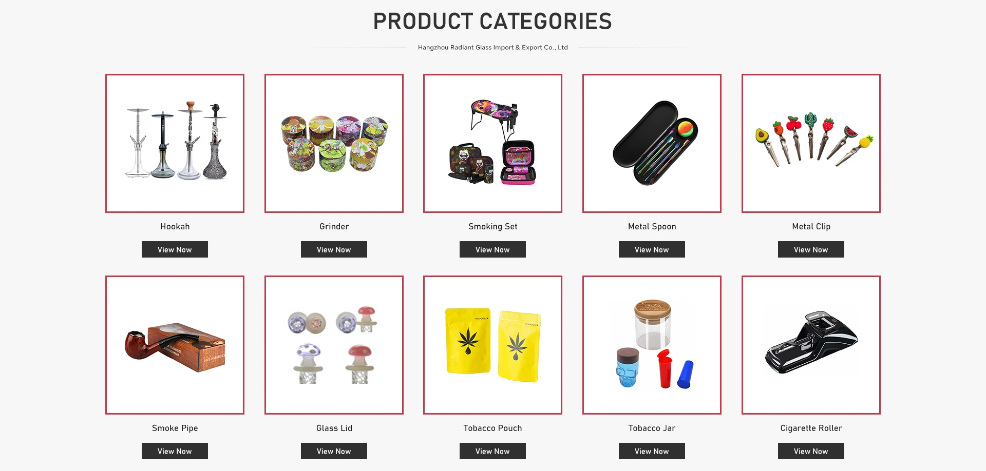 Productos principales:Dispositivos para fumar de vidrio, Dispositivos para fumar de cerámica, Dispositivos para fumar de metal, Dispositivos para fumar de silicona, Accesorios para dispositivos para fumar
