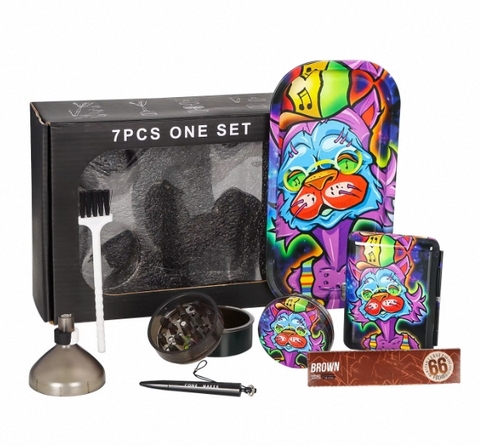 초보자를 위한 7-in-1 세트 담배 밀 트레이 도매 흡연 키트 올인원 흡연 세트