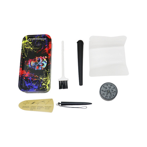 롤링 페이퍼 금속 담배 케이스 담배 트레이 플라스틱 담배 펜 그라인더 파이프 강모 브러시 7-in-1 세트
